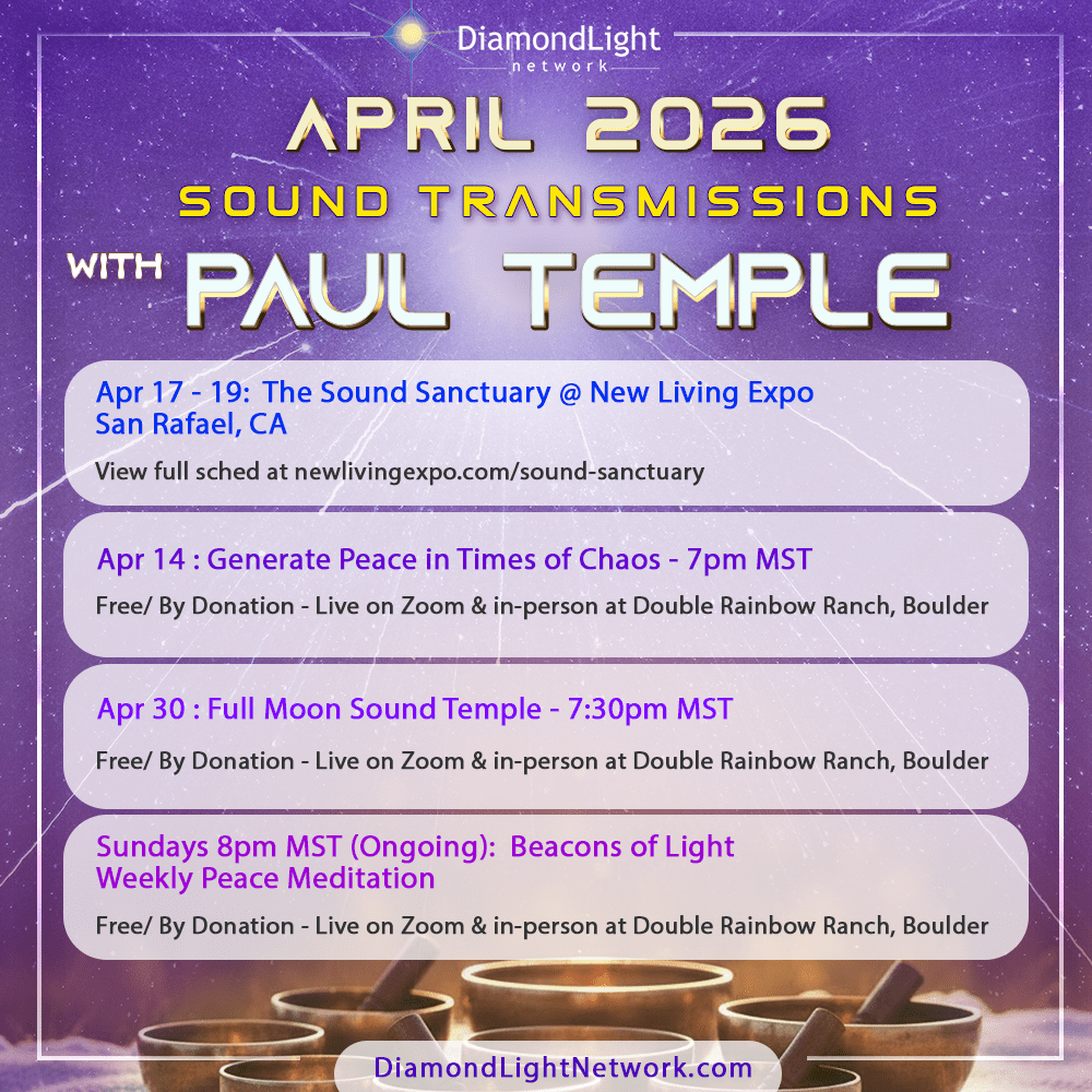 Those of you who have experienced the music of Paul Temple’s RadianceMatrix understand that the music he channels catalyzes and deepens the process of Diamond Light activation. The Vajra energies generated by his Tibetan bowls and chanting resonate the Vajra light in our hearts so we can remember our evolutionary potential.